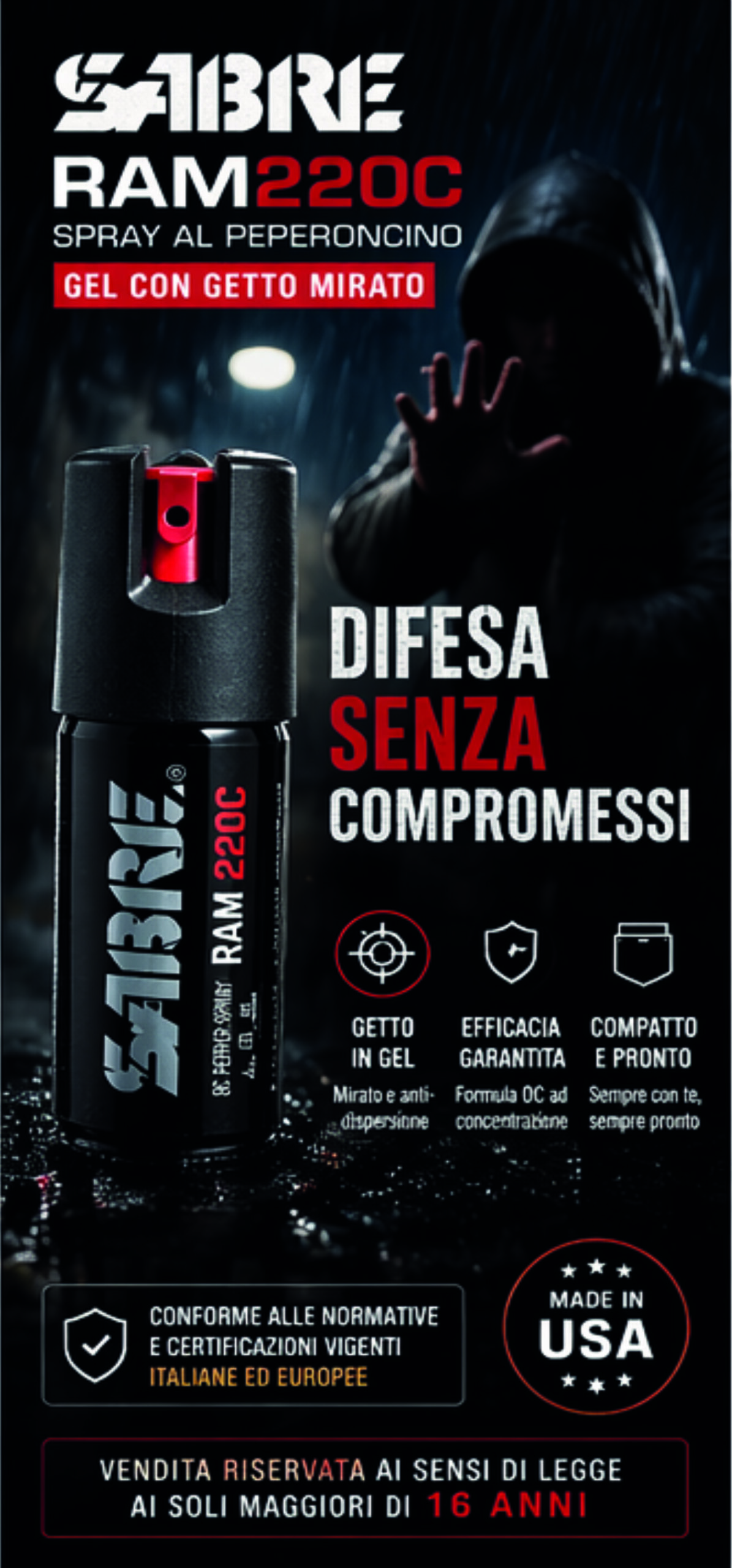 Il SABRE RAM220C è uno spray al peperoncino in formato gel progettato per la difesa personale rapida ed efficace. Il getto mirato riduce la dispersione e aumenta il controllo anche in condizioni critiche.